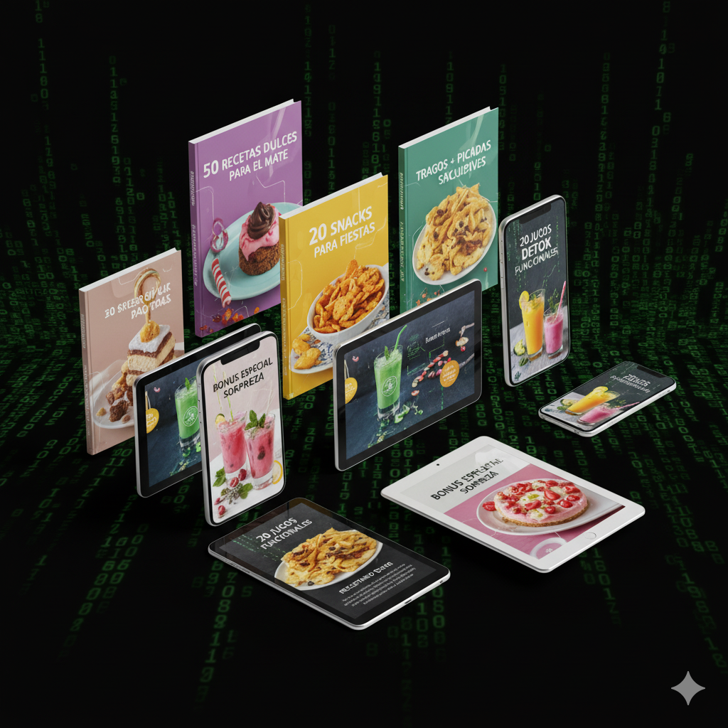 - ✔ 5) Recetarios extra — Desayunos, almuerzos y cenas rápidas para sumar variedad.
